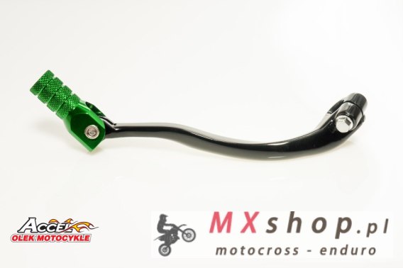 ACCEL DŹWIGNIA ZMIANY BIEGÓW KAWASAKI KXF 250 '06-'08 ALUMINIOWA KOLOR CZARNY, KOŃCÓWKA ZIELONA