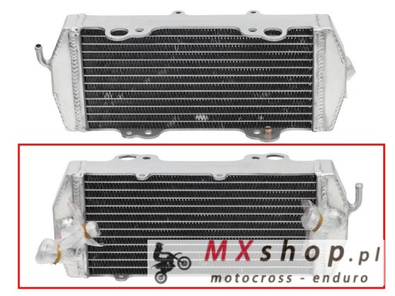 CHŁODNICA KTM SX/EXC 250 '00-05, SX/EXC 400/450/520 '00-02, SX/EXC 525 '00-05 WZMOCNIONA O STANDARDOWEJ POJ. PRAWA (SZT.) (Z KORKIEM)