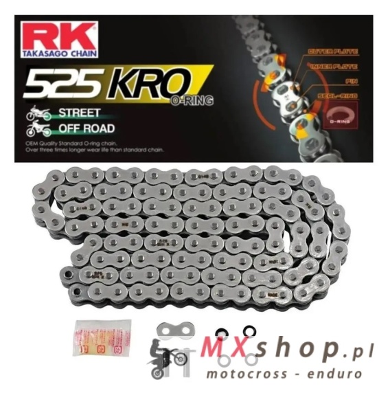 RK ŁAŃCUCH NAPĘDOWY 525KRO-124 (O-RING) ZAKUWKA (CLF) W ZESTAWIE KOLOR STANDARD (POJEMNOŚĆ: DO 800 CCM) (38,3 KN)