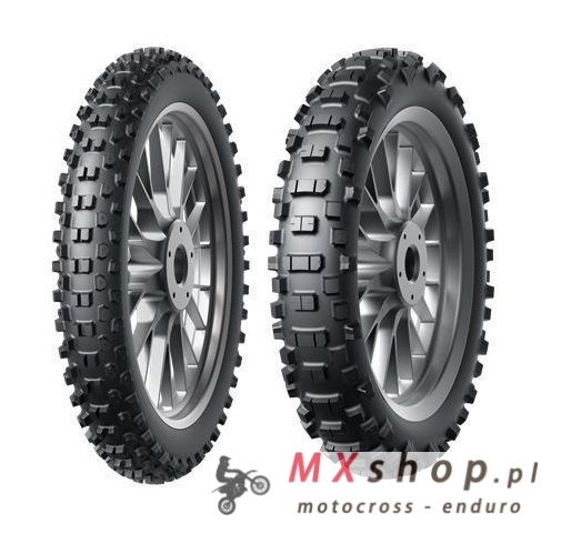 RYMAX ENDURO E80 - DOSKONAŁY WYBóR DLA PASJONATóW MOTOCROSS I OFFROAD RYMAX ENDURO E80 gwarantuje doskonałą przyczepność na piaszczystym, miękkim terenie, w błocie oraz na średnich i twardych nawierzchniach. Zaprojektowana z myślą o zapewnieniu najwyższej wydajności i trwałości, opona ta oferuje kierowcom przewagę w różnorodnych warunkach. Zoptymalizowana konstrukcja Apex zapewnia jednolitą sztywność ściany bocznej, a trójwarstwowa konstrukcja umożliwia lepszą kontrolę poślizgu i przyczepność na zakrętach. Ponadto, bloki centralne oferują doskonałą przyczepność i trwałość, a także dłuższą żywotność bieżnika, a konstrukcja klocków 3D Ladder poprawia hamowanie i pokonywanie zakrętów. ZALETY RYMAX E80: - Konstrukcja bieżnika - opona RYMAX E80 charakteryzuje się agresywnym wzorem bieżnika, zaprojektowanym specjalnie do jazdy w terenie. Dzięki głębokim wypustkom rozmieszczonym w strategicznych miejscach, zapewnia doskonałą przyczepność, kontrolę i stabilność nawet w najbardziej wymagających sytuacjach. - Trwałość - RYMAX E80 jest zbudowana z wytrzymałych materiałów i starannej konstrukcji, co przekłada się na długotrwałą wydajność, wytrzymałość, odporność na przebicia i uszkodzenia, - Prowadzenie - konstrukcja RYMAX E80 umożliwia pokonywanie zakrętów, nierówności terenu i przeszkód, zwiększając ogólną kontrolę i pewność siebie na torze lub szlaku. - Wszechstronność w terenie - RYMAX E80 zapewnia wyjątkową przyczepność i stabilność w różnych warunkach terenowych, co czyni ją niezawodnym wyborem dla motocyklistów, którzy dążą do osiągnięcia sukcesów w zawodach lub czerpania przyjemności z jazdy. Opona RYMAX ENDURO E80 jest dostępna w dwóch rozmiarach: 90/90-21 oraz 140/80-18. Co więcej, tylny rozmiar jest dostępny w aż trzech wariantach - STANDARD, SOFT oraz EXTREME SOFT ! Dzięki temu każdy motocyklista może wybrać oponę , która najlepiej odpowiada jego indywidualnym potrzebom. RYMAX ENDURO E80 to idealny wybór dla wszystkich, którzy kładą nacisk nie tylko na bezpieczeństwo i komfort jazdy na różnorodnych terenach, ale także na przystępną cenę. Dzięki tej oponie możesz cieszyć się niezawodną jakością i wydajnością, nie obciążając zbytnio swojego portfela. Jeśli szukasz niezawodnej opony terenowej, która zapewni Ci najwyższą wydajność i trwałość, RYMAX E80 to doskonały wybór dla Ciebie.